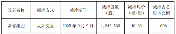 2025年9月9日,赏睿集团通过巨额往返减握电声股份4,242,536股,减握均价10.32元/股,据此策划套现4378.30万元。